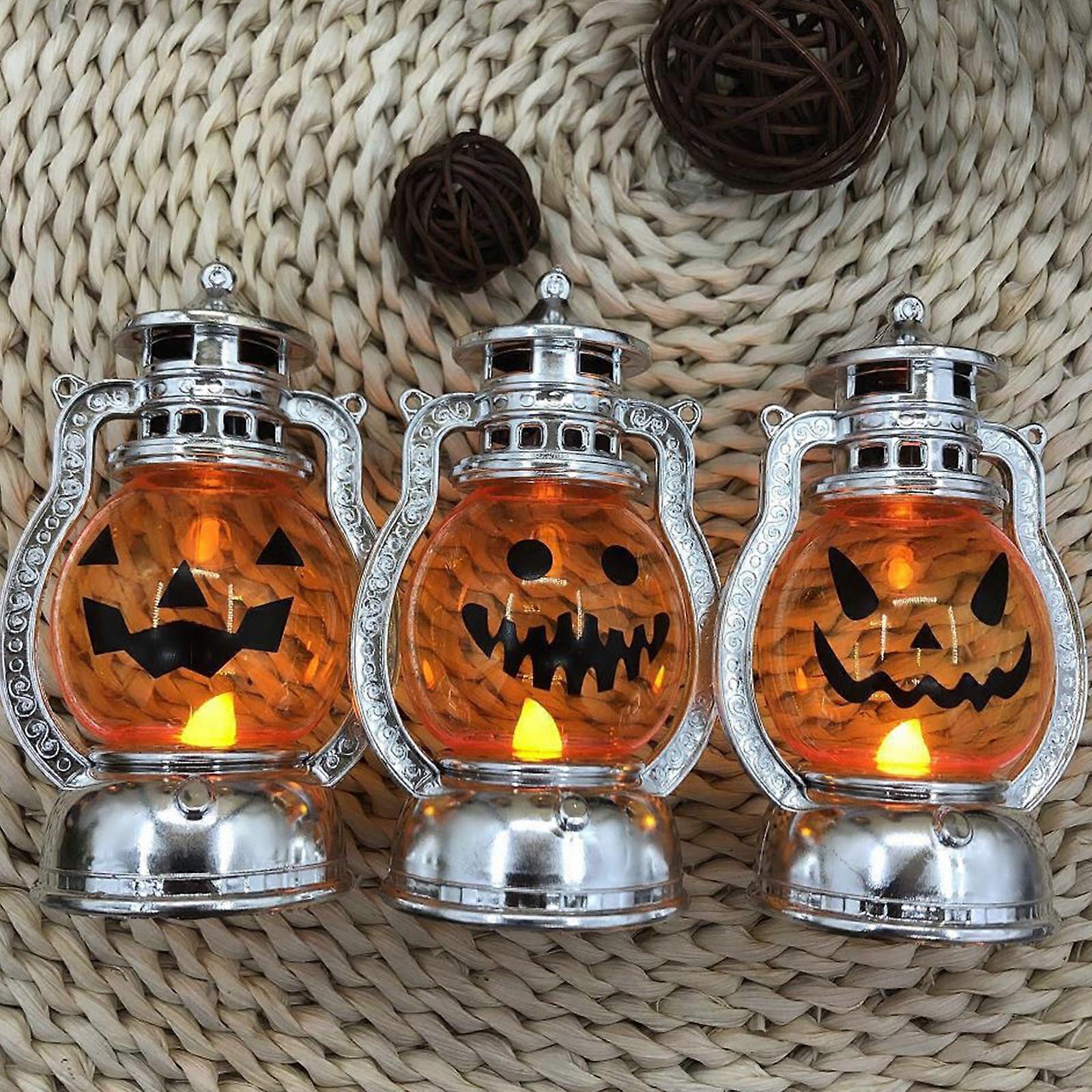 Halloween Decorative Pumpkin Vintage Easter Plastic Electronic Candle Handheld Pumpkin Electroplated American Wind