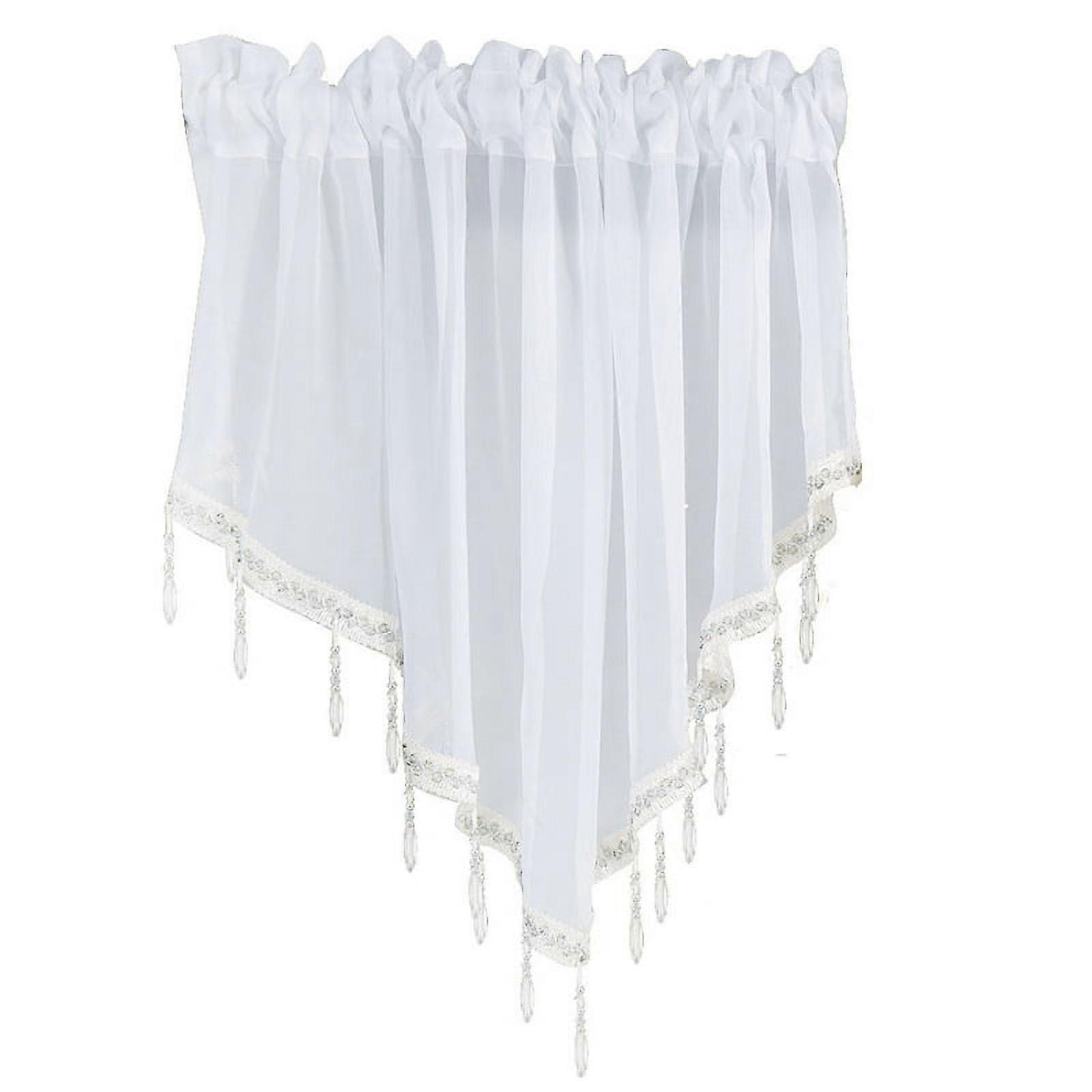 ZUARFY Tulle Triangle Valance with Crystal Beads Sheer Panel Rod Pocket Window Curtain
