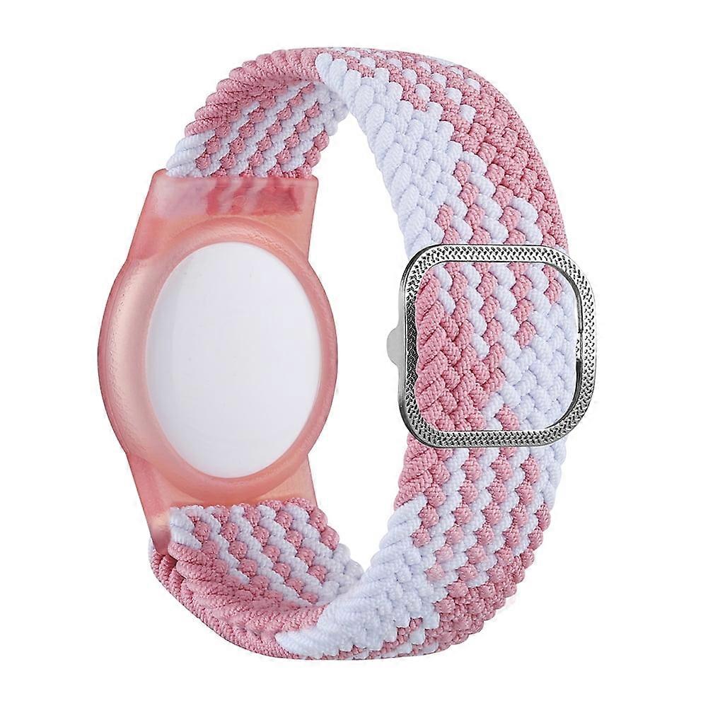 Nylon Wristband Anti-Scratch TPU Protective Case for compatible with Apple Airtag(Pink White)