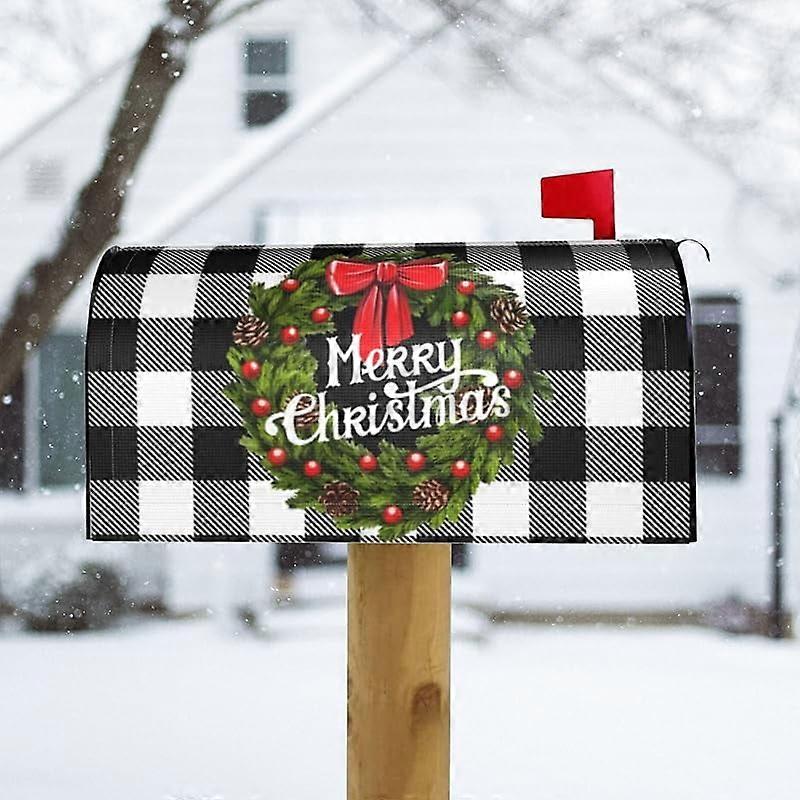 Magnetic Christmas Mailbox Cover 18"x21" - Outdoor Welcome Wrap with Buffalo Plaid & Holly Wreath, Garden Decor, Standard Size