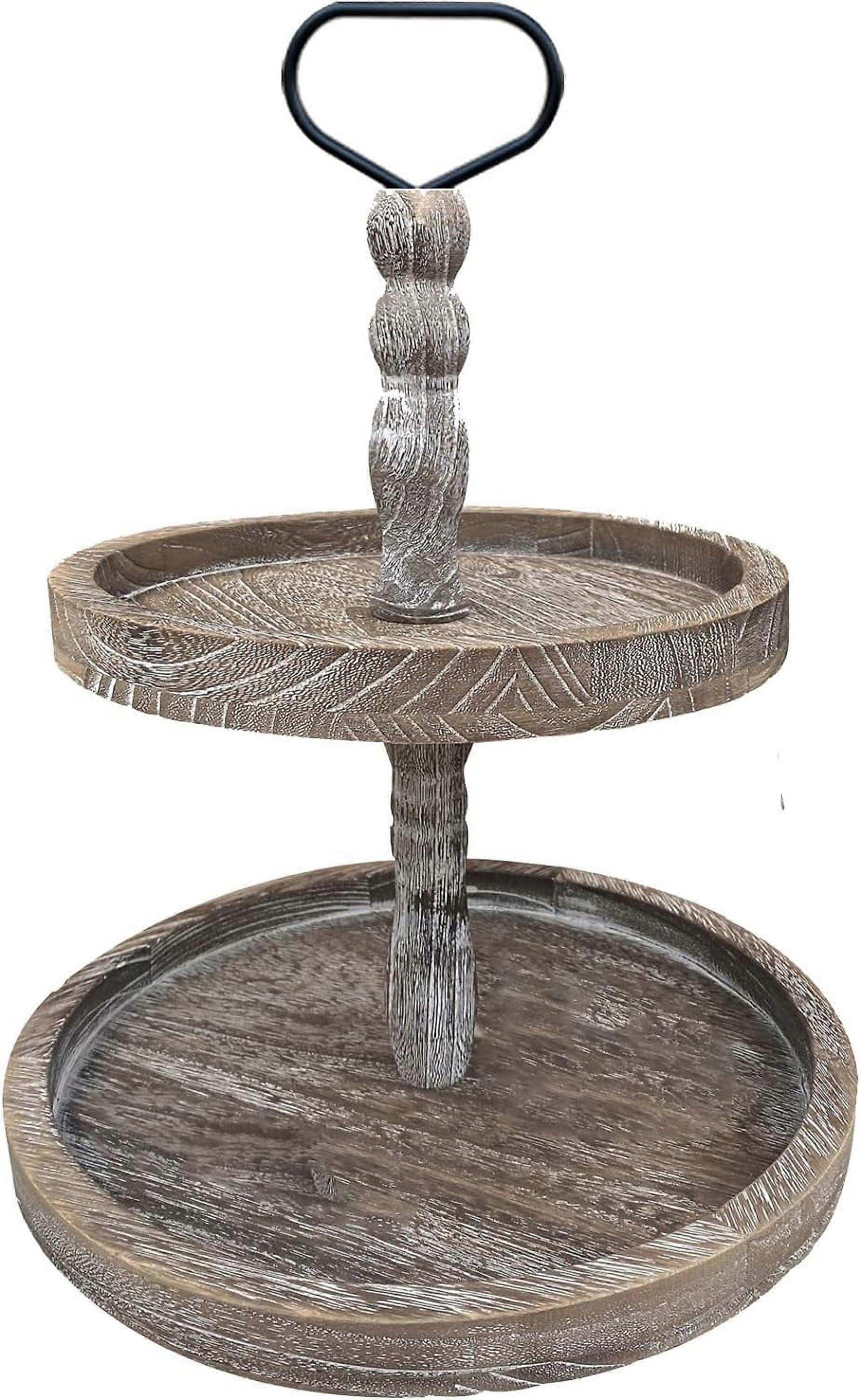 DEFNES 2-Tier Tray Stand, Wooden Farmhouse Decorative Tray for Kitchen, Desserts, Fruit - Brown, Compatible with holiday decor