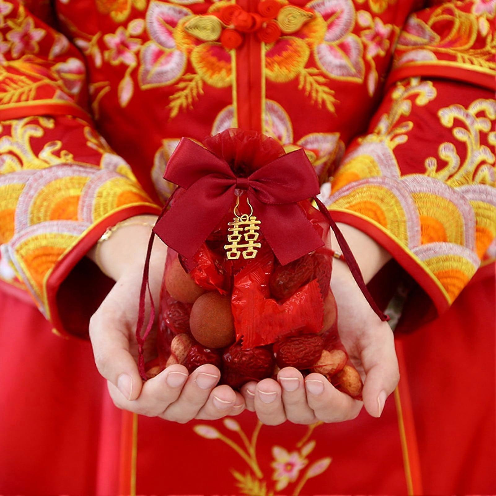 SUSUchens 10Pcs Wedding Supply Pouch Detailed Easy to Carry Meticulous Workmanship Chinese Red Drawstring Gift Bag for Store Style L
