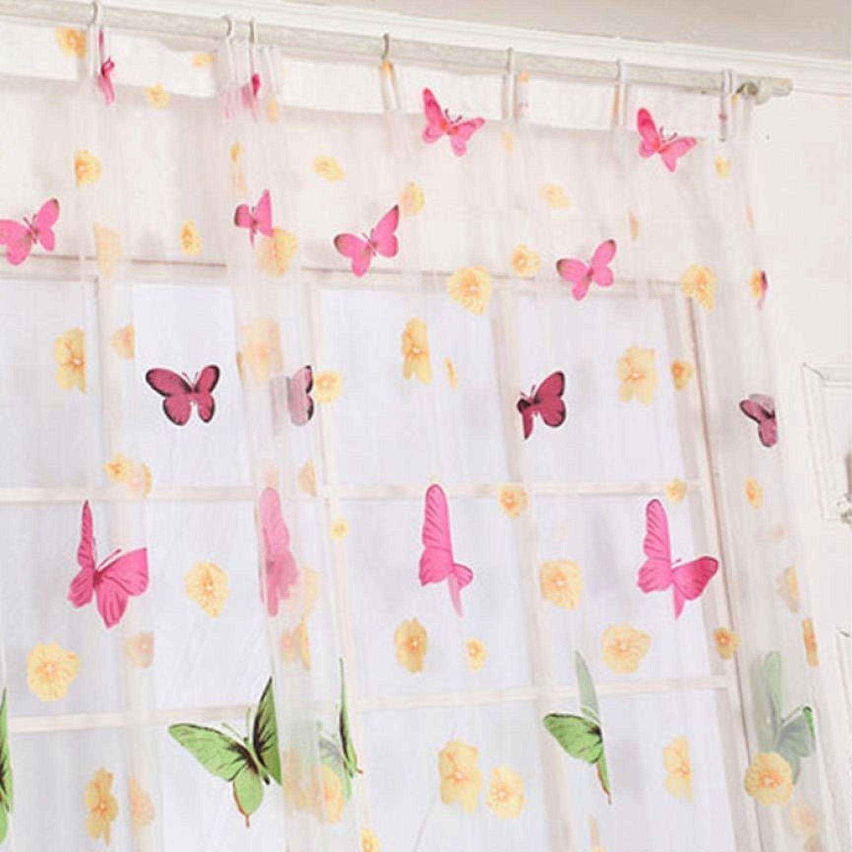 Hot!Butterfly Print Sheer Window Curtains For Living Room Bedroom Girl 200X100CM, curtains