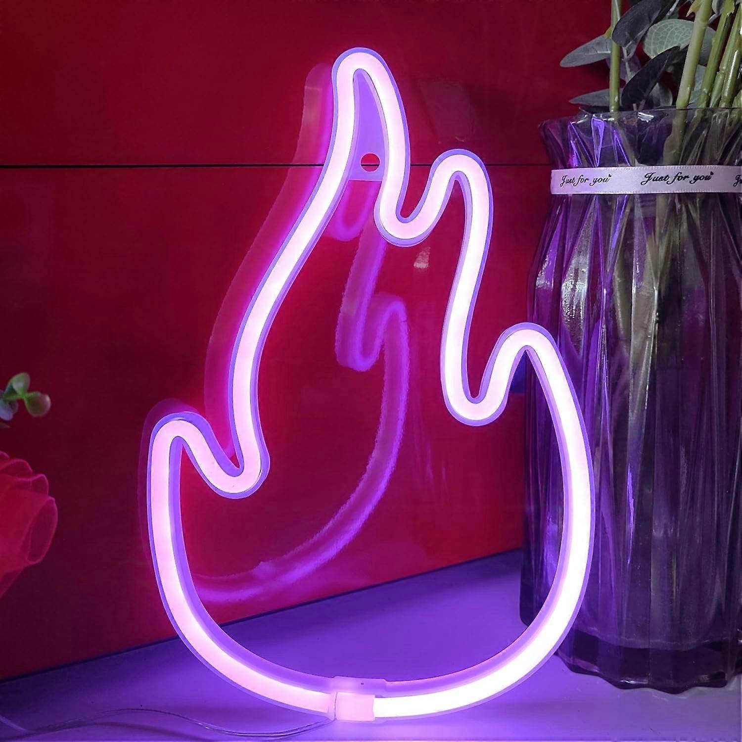 Flame Neon Sign, USB or 3-AA Battery Powered, LED Table & Wall Decor for Bedroom, Birthday, Wedding - Purple (Compatible with)