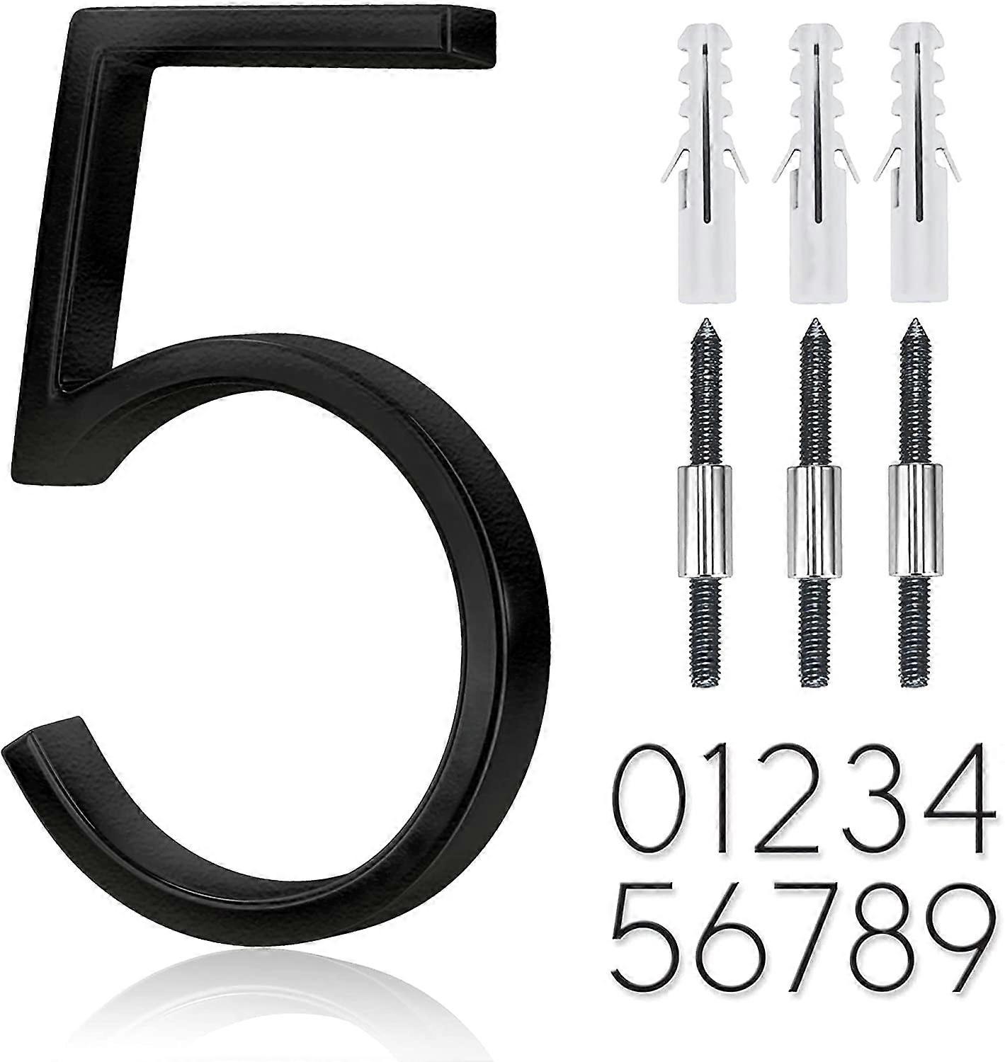 Stainless Steel Floating Door Number 5 inch, Rust Resistant, Black Coated, 911 Visible Sign, Numeric (5) - Compatible with modern home decor
