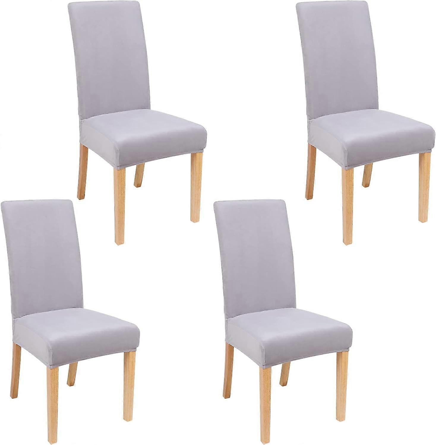 POWKOL Velvet Stretch Dining Room Chair Covers, Soft Removable Dining Chair Slipcovers, Dining Chair Covers Set of 4, (Light Grey)