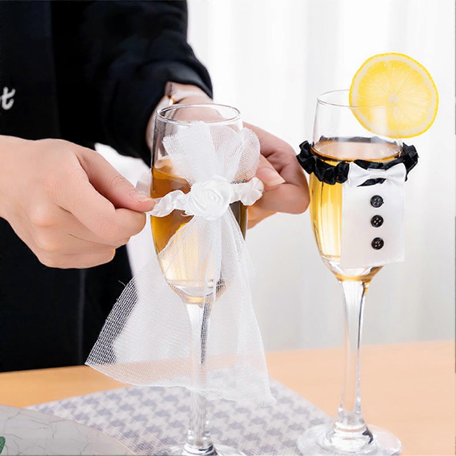 SUSUchens 2 Pair Creative Wedding Dress Shape Wine Cup Cover Handmade Festive Touch Fabric Wine Glass Cover for Home Black White