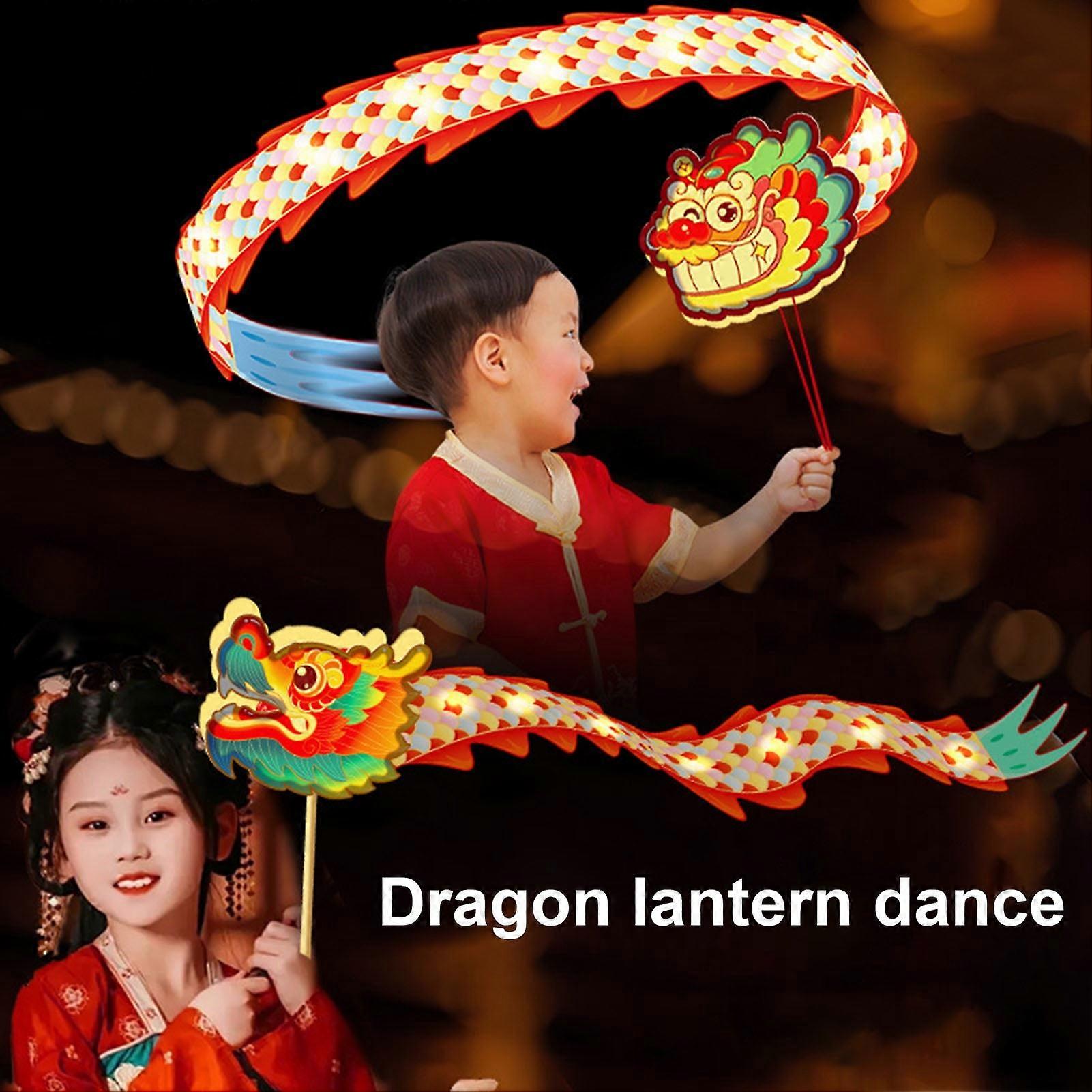 SUSUchens LED Dragon Dance Ribbon Streamer Dragon Dance Lantern DIY Kit Lantern Craft Set Chinese Dragon Dance Ribbon Flashing Lights Style B 160cm