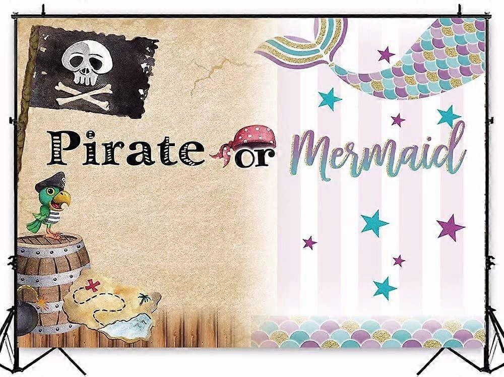 7x5ft Kids Birthday Backdrop Pirate and Mermaid Theme Photography Background Cake Table Banner Decorations Baby Shower Photo Studio Booth W-1984