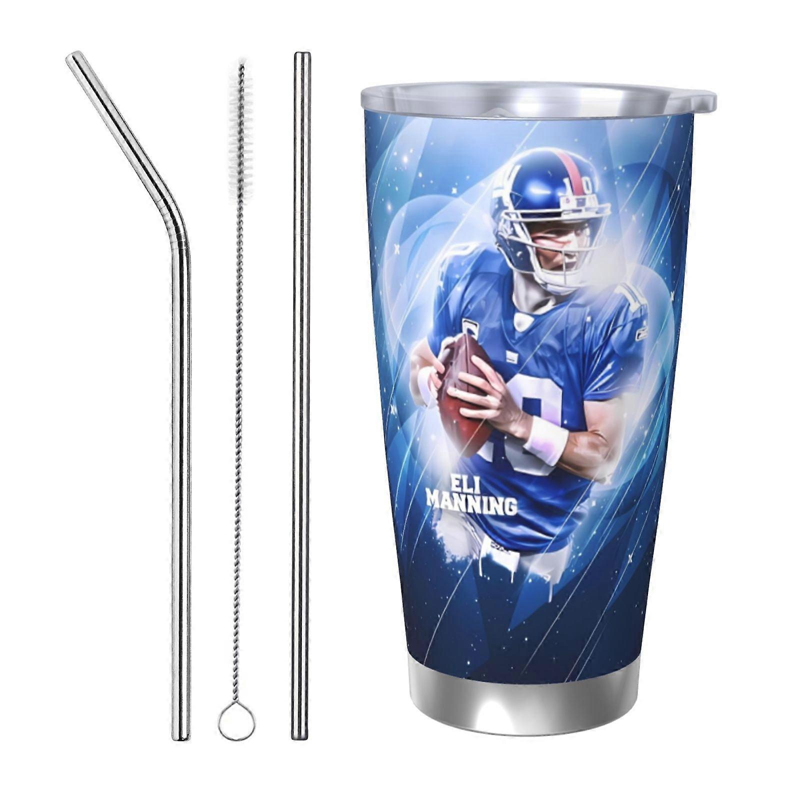 Giants Football Team Theme 20oz Stainless Steel Thermos Cup with Lid & Straw, Compatible with Car Cup Holder, for Hot & Cold Drinks