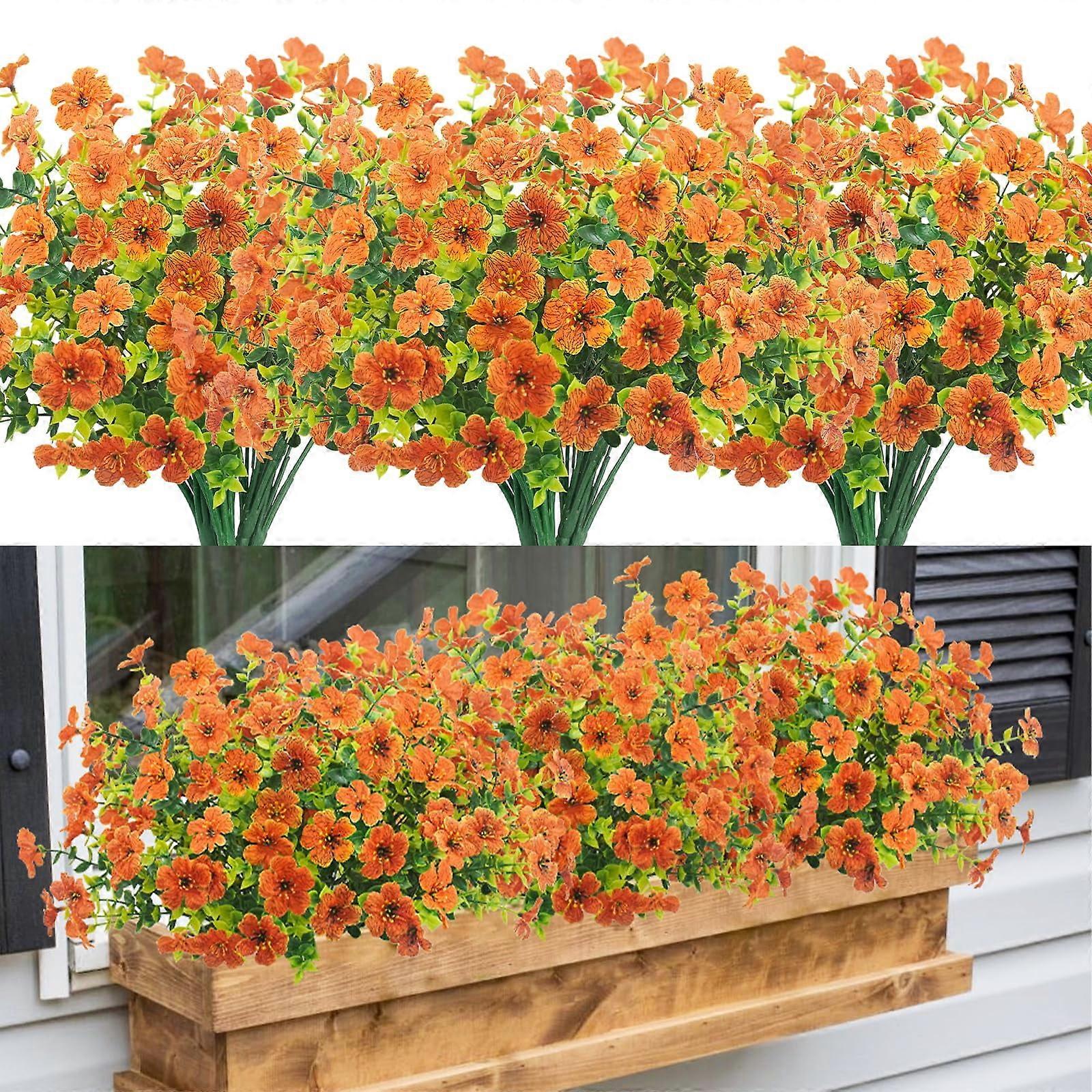 Tepaler 24 Pcs Artificial Fall Flowers Bulk, UV Resistant Fake Autumn Plants for Outdoor Planters, Window Box, Porch, Thanksgiving Decor Orange