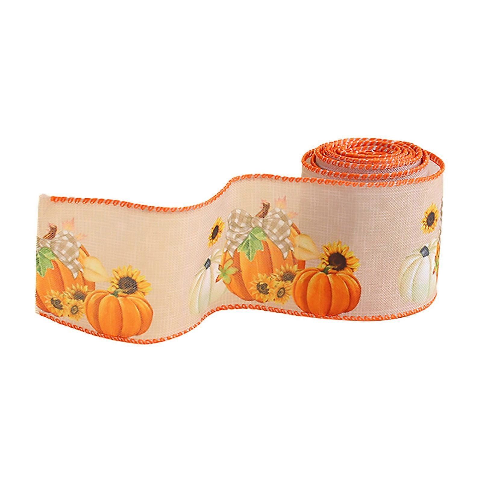 Fall Burlap Ribbon with Wired Edge, Pumpkin & Maple Leaf Print, Rustic Harvest Truck & Orange Plaid for Autumn Thanksgiving DIY Wreaths, Gift
