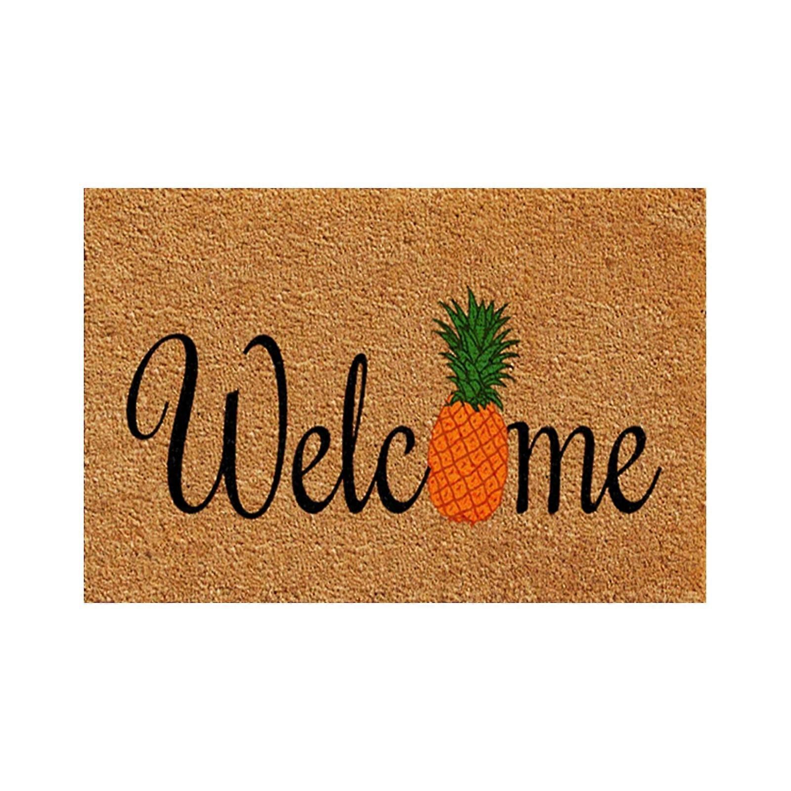 Pineapple Letter Printed Door Mat, Slip-Resistant Outdoor Entrance Porch Carpet for Front Door, Polyester Fun Floor Mat