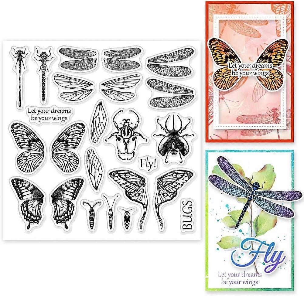 Insect Butterfly Dragonfly Clear Stamps, Compatible with Scrapbooking, Cards, Journal, 5.91×5.91inch Transparent Silicone Seals