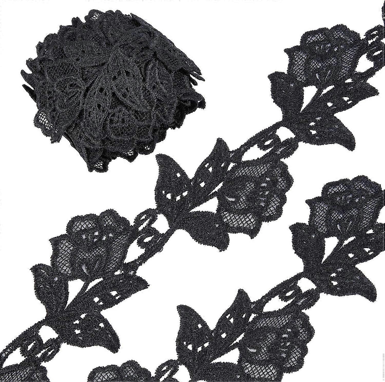 5 Yards Floral Boho Lace Trim, 3.2" Wide Black Flower Embroidery Edge, Compatible with Wedding Dress DIY Sewing Crafts