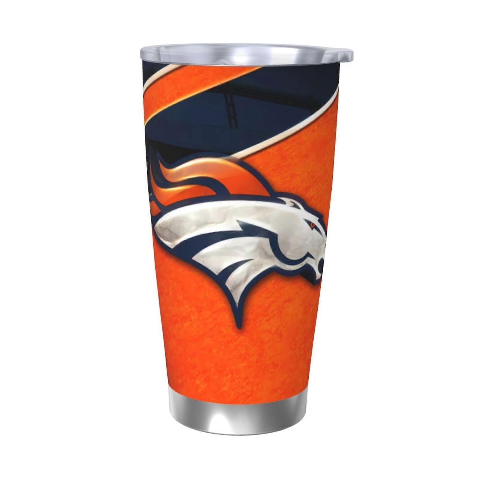Broncos Football Team Theme 20oz Stainless Steel Thermos Cup with Lid & Straw - Compatible with Broncos, Hot/Cold Drinks, Car Cup, Coffee & Sports