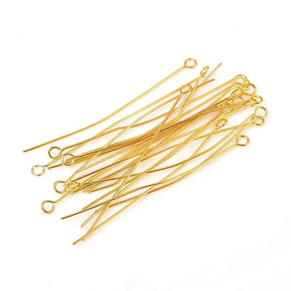 304 Stainless Steel Eye Pins Golden 50mm Hole: 2mm Pin: 0.6mm