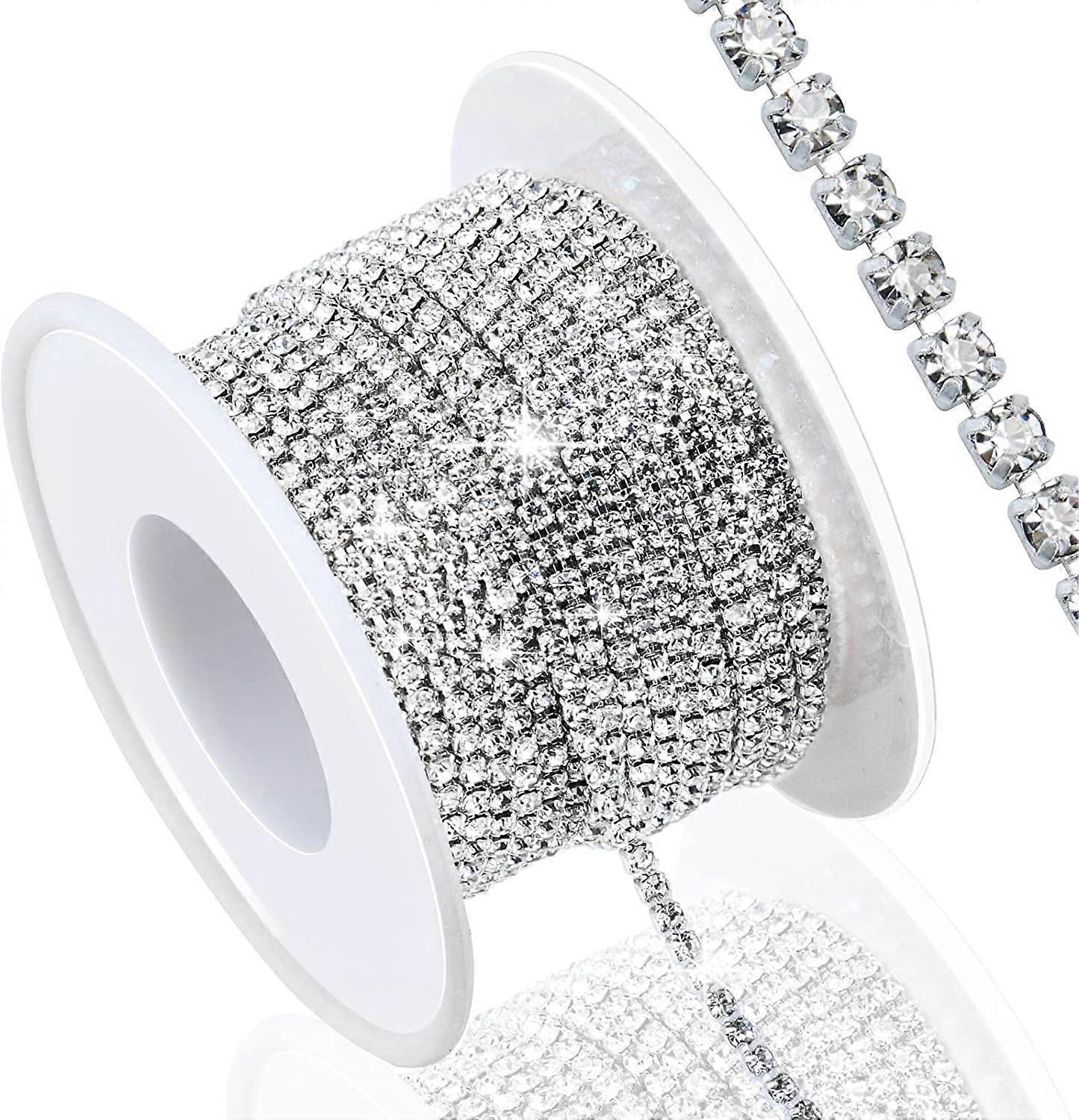 10 Yards 2MM Crystal Rhinestone Chain Trim, Compatible with Sewing Shoes Clothes Cups, Claw Rhinestone for Craft Jewelry Wedding Bouquet DIY, Silver