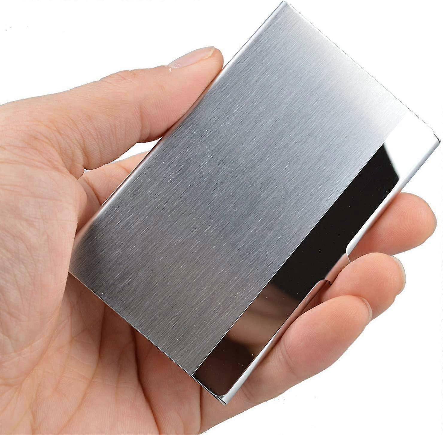 ZENGO Business Card Holders, Professional Stainless Steel Business Name Card Case RFID Blocking Name Card Holder Case, Stocking Fillers Gifts Silver