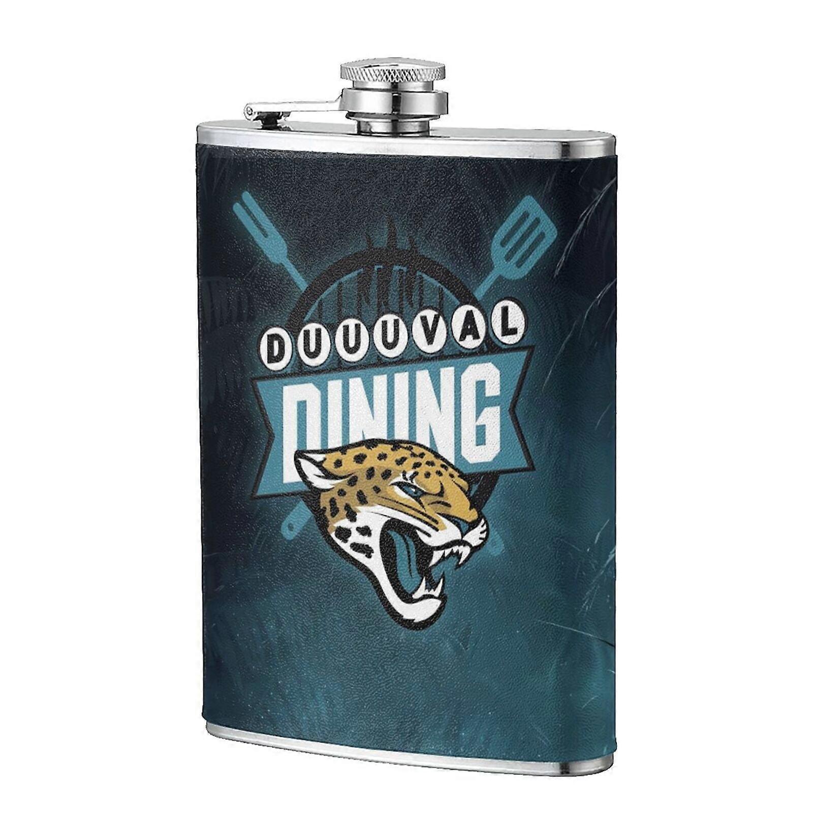 Jaguars Flagon Hip Flask 8oz, Food-Grade Stainless Steel & Leather, Compatible with Outdoor Sports, Camping, Wedding Groomsman Gift