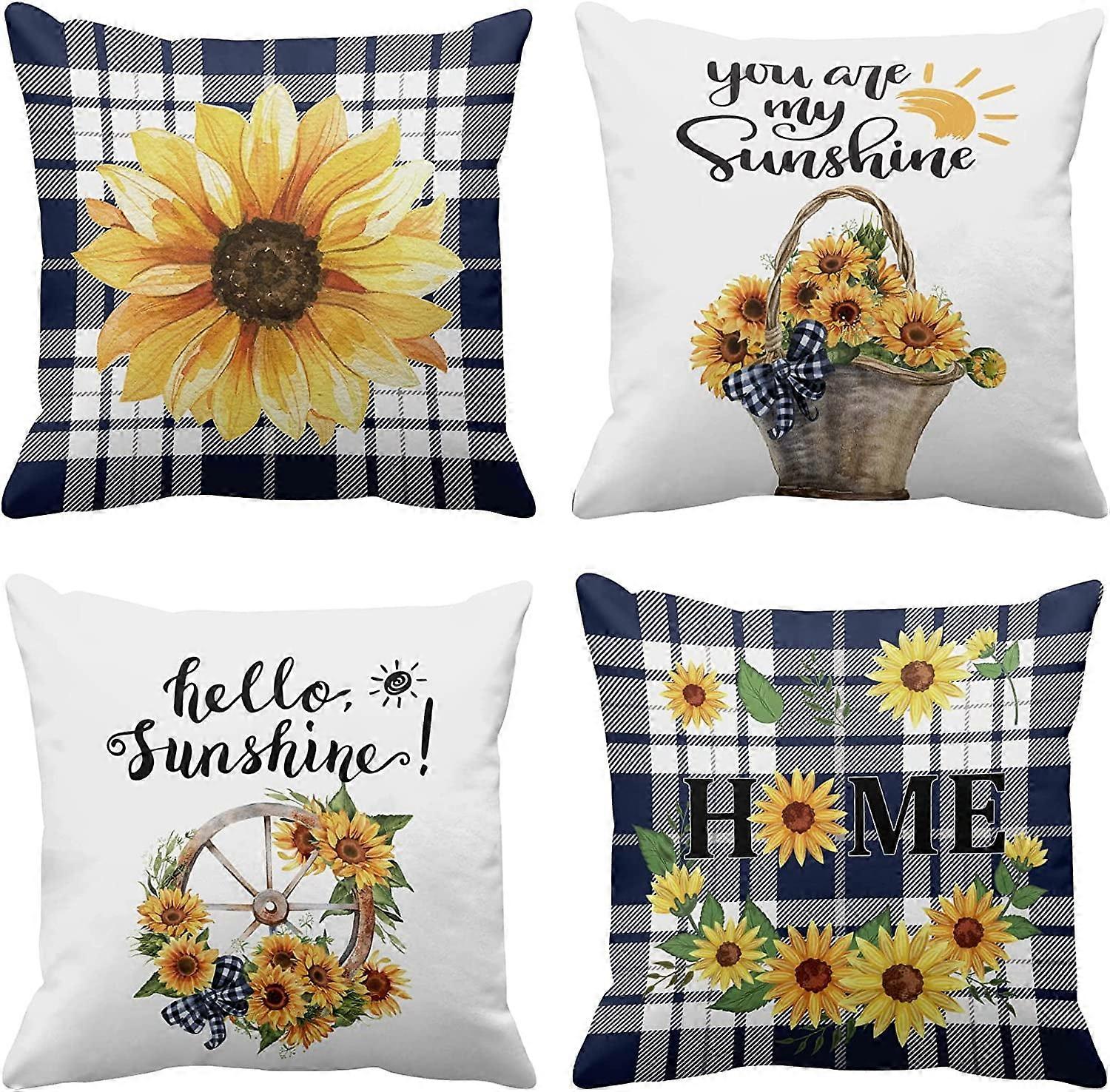 Sunflowers You are My Sunshine Blue Buffalo Grid Watercolor Decorative Pillow Cases Home Decor Standard Square 18x18 Inches Pillowcases