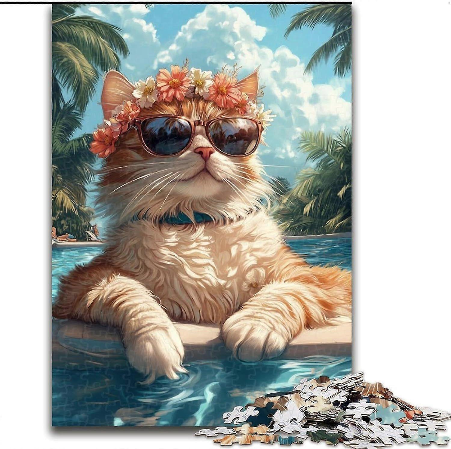 Adult Jigsaws Difficult Cat on Vacation Puzzle,is Ideal As Gifts for The Whole Family Suitable - PT 637