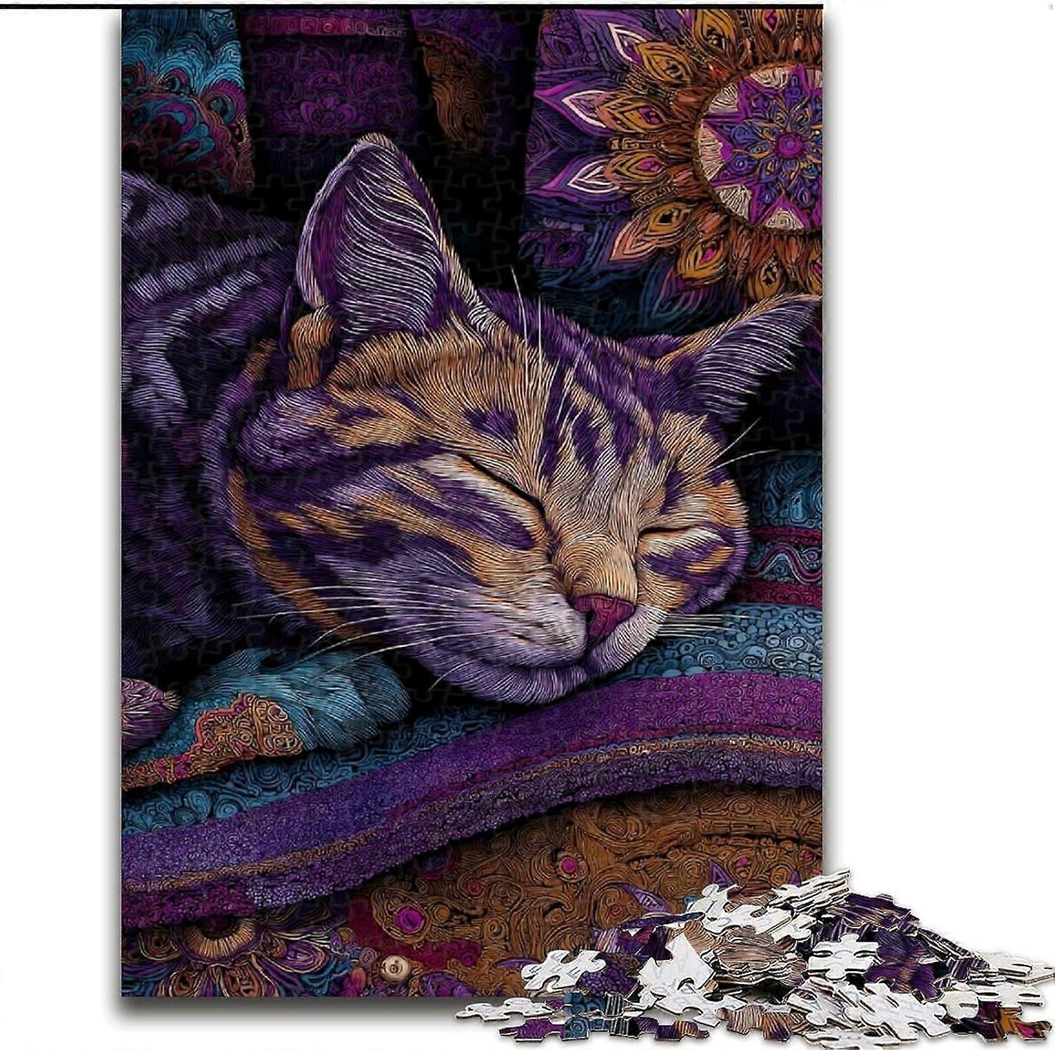 Jigsaw Puzzle for Adults& Teens Orange Cat with Flowers for Adults,Challenging Game Toys Wall Decoration Unique Birthday And Xmas Gifts - PT 919
