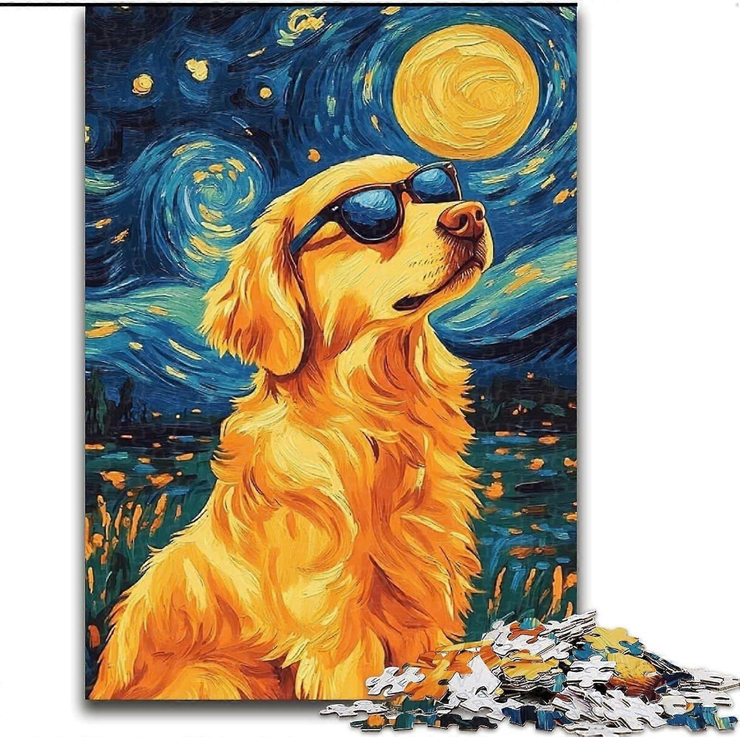 Jigsaw Puzzles for Adults Golden Retriever Under The Night Sky for Teenagers,Challenging Game Toys Wall Decoration Unique Birthday And Xmas Gifts - PT
