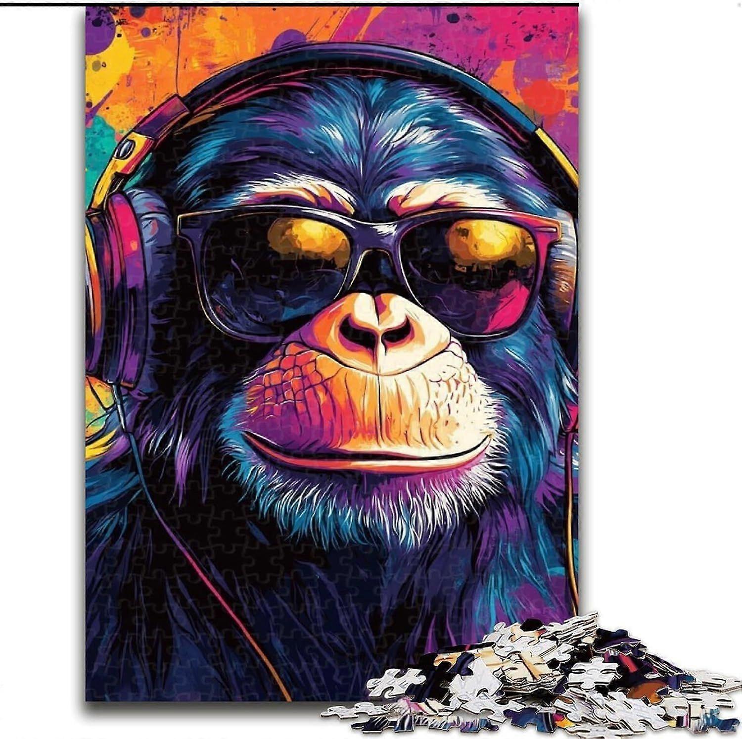 Jigsaw Puzzles for Teenagers Gifts Chimpanzee Wearing Headphones Puzzles,Decompressing Intellectual Educational Toy Perfect Decoration - PT 1491