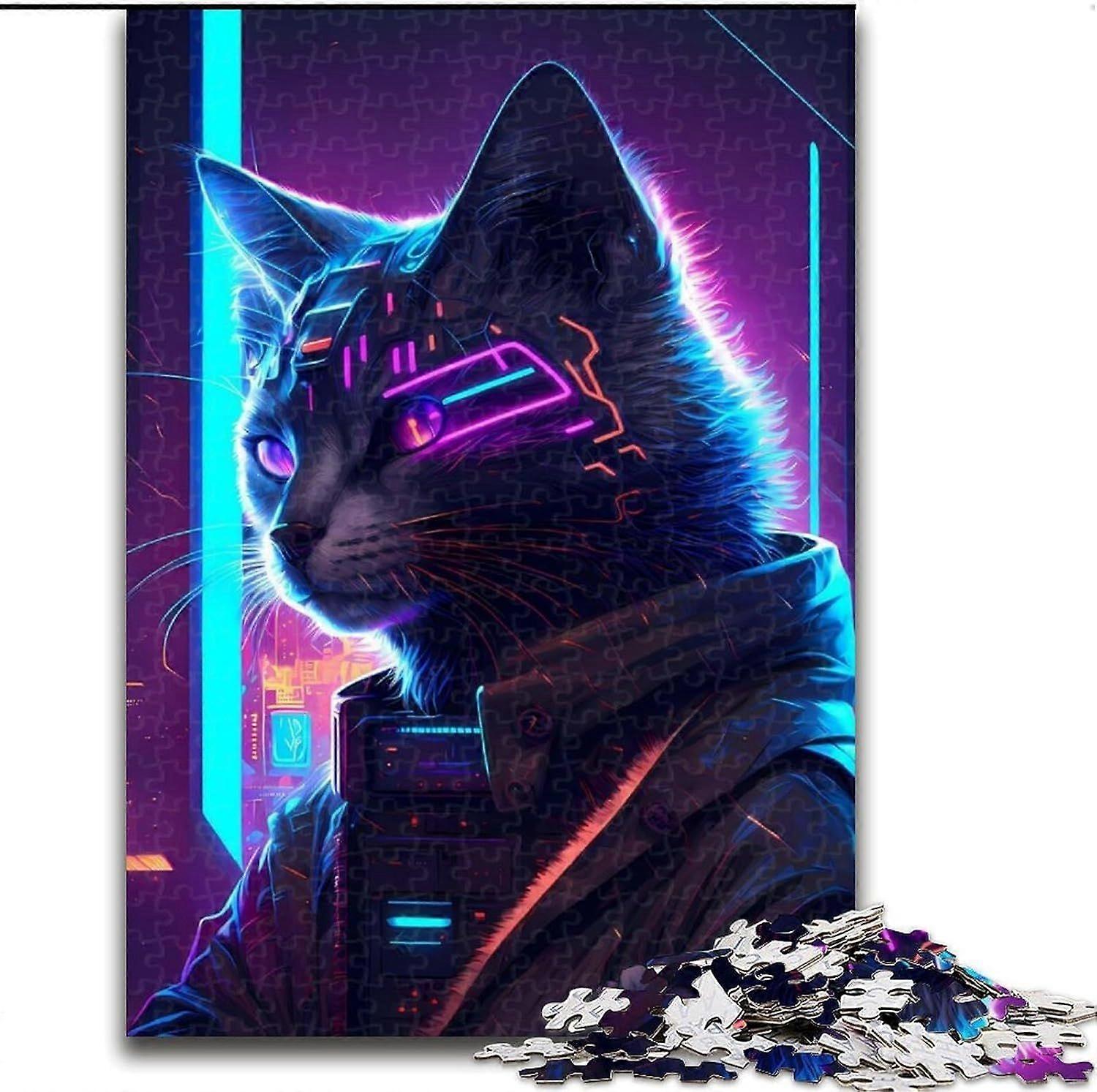 Jigsaw Puzzle for Adults& Teens Cat Neon Art Puzzles for Teenagers,Secret Santa Gifts - PT 2525
