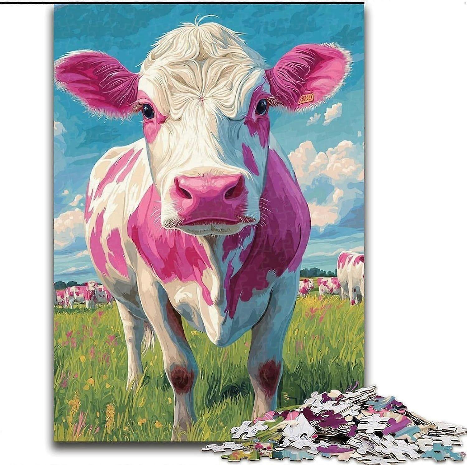 Jigsaw Puzzles for Adults Teens White Pink Cow Puzzles,Birthday Present, Gifts, Wall Art - PT 2119