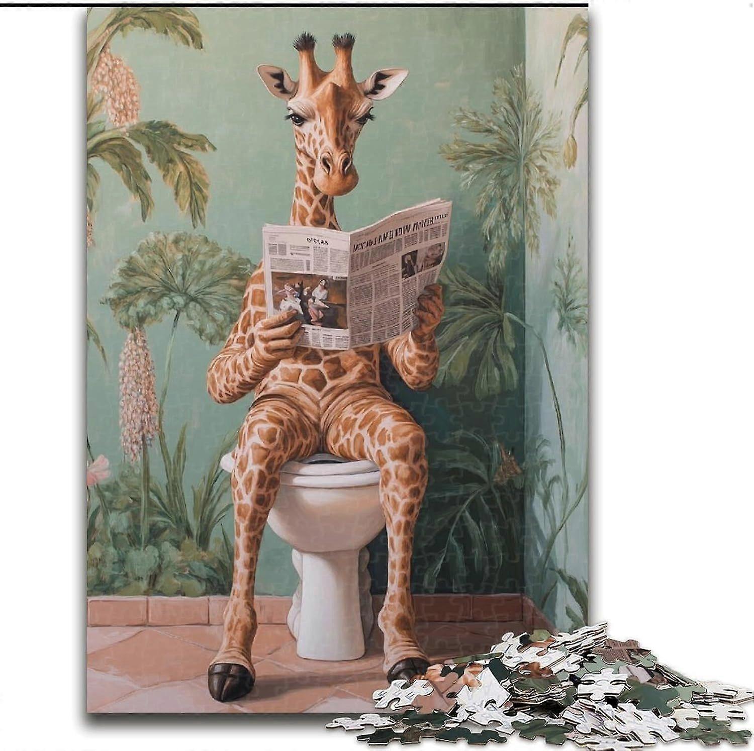Jigsaw Puzzles for Teenagers Gifts Giraffe on The Toilet Puzzle,Staycation Kill Time with Fully Interlocking Randomly Shaped Pieces - PT 2882