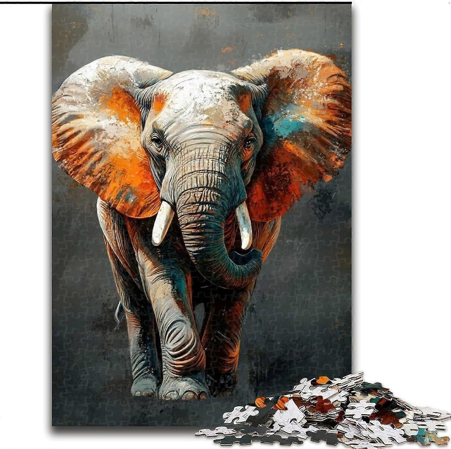 Jigsaws Puzzles for Teenagers Gifts Elephant Oil Painting Puzzle,Educational Stress Relief Toy Gifts for Friends And Family - PT 2861