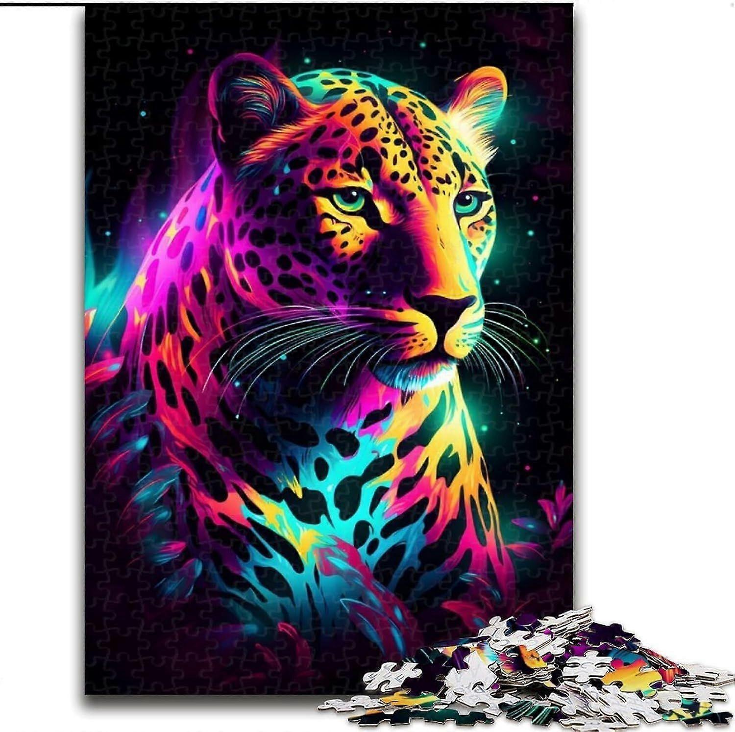 Puzzles for Adults Teens Neon Leopard Puzzle,Educational Stress Relief Toy Gifts for Friends And Family - PT 2657