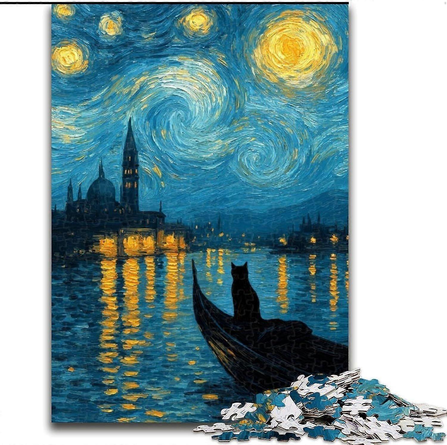 Jigsaw Puzzles for Teenagers Night Sky Cat Puzzle,Challenging Game for Is Ideal As A Gift for The Whole Family - PT 2957