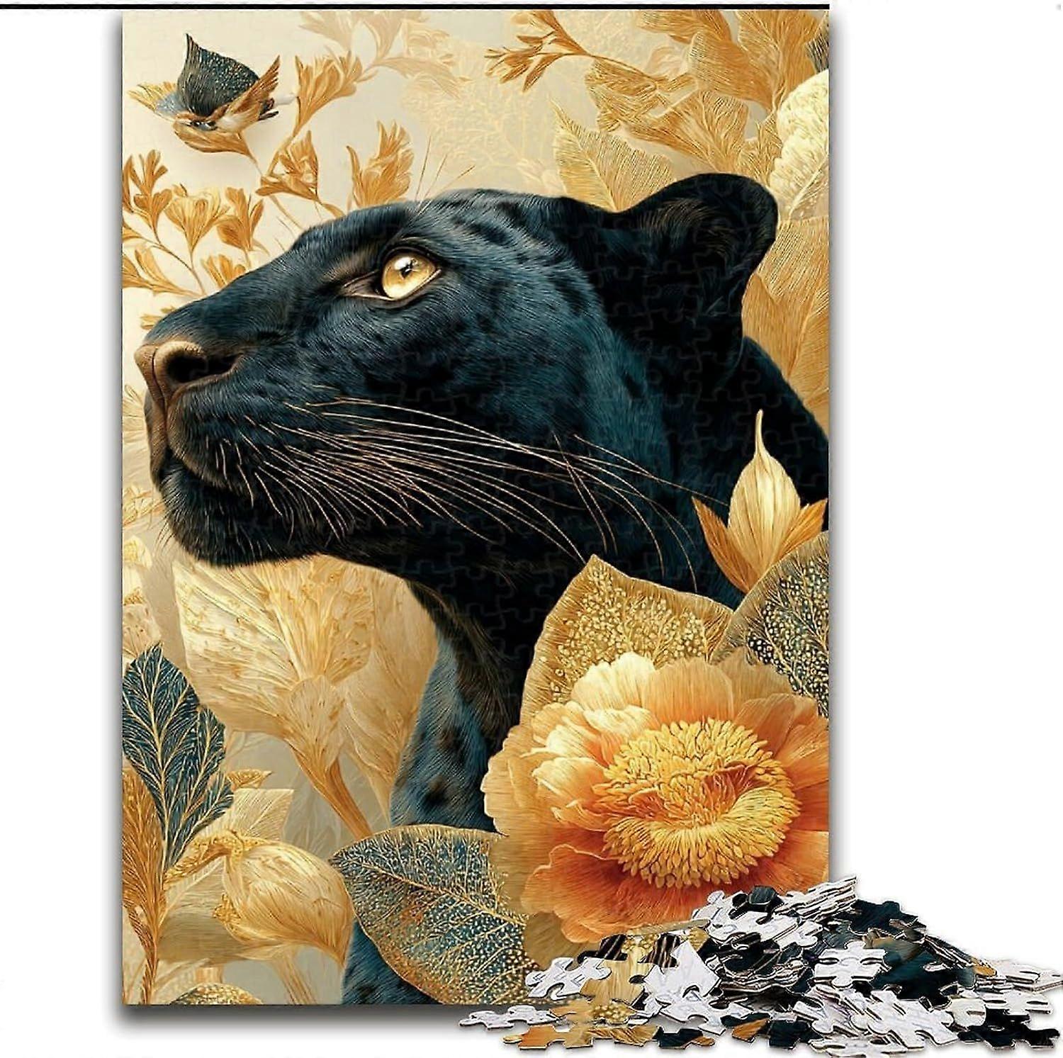 Jigsaw Puzzles for Adults Teens Black Leopard Flowers Puzzles for Teenagers,Suitable for Desktop Decoration - PT 2339