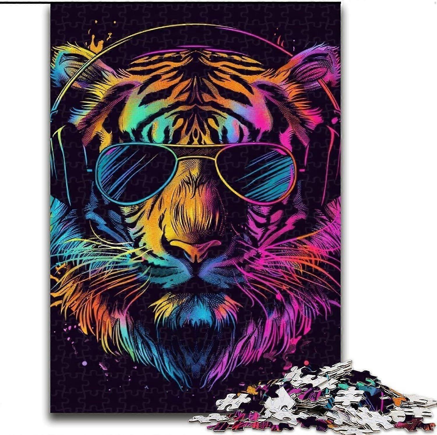 Puzzles for Adults Tiger with Headphones Jigsaw,Staycation Kill Time - PT 2873