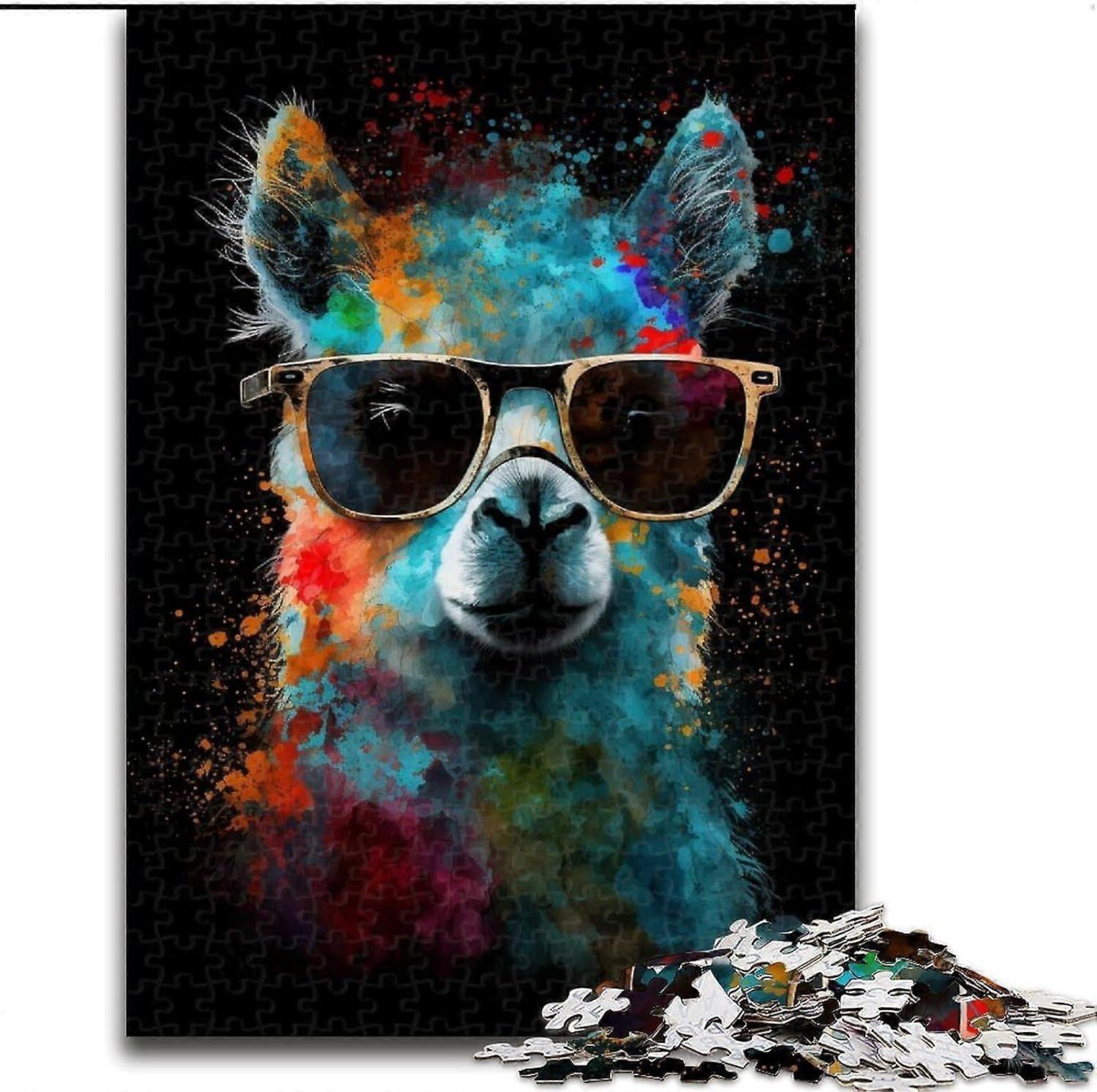 Puzzles for Teenagers Colourful Alpaca with Glasses Puzzles for Adults,Educational Family Game Suitable for Desktop Decoration - PT 3094
