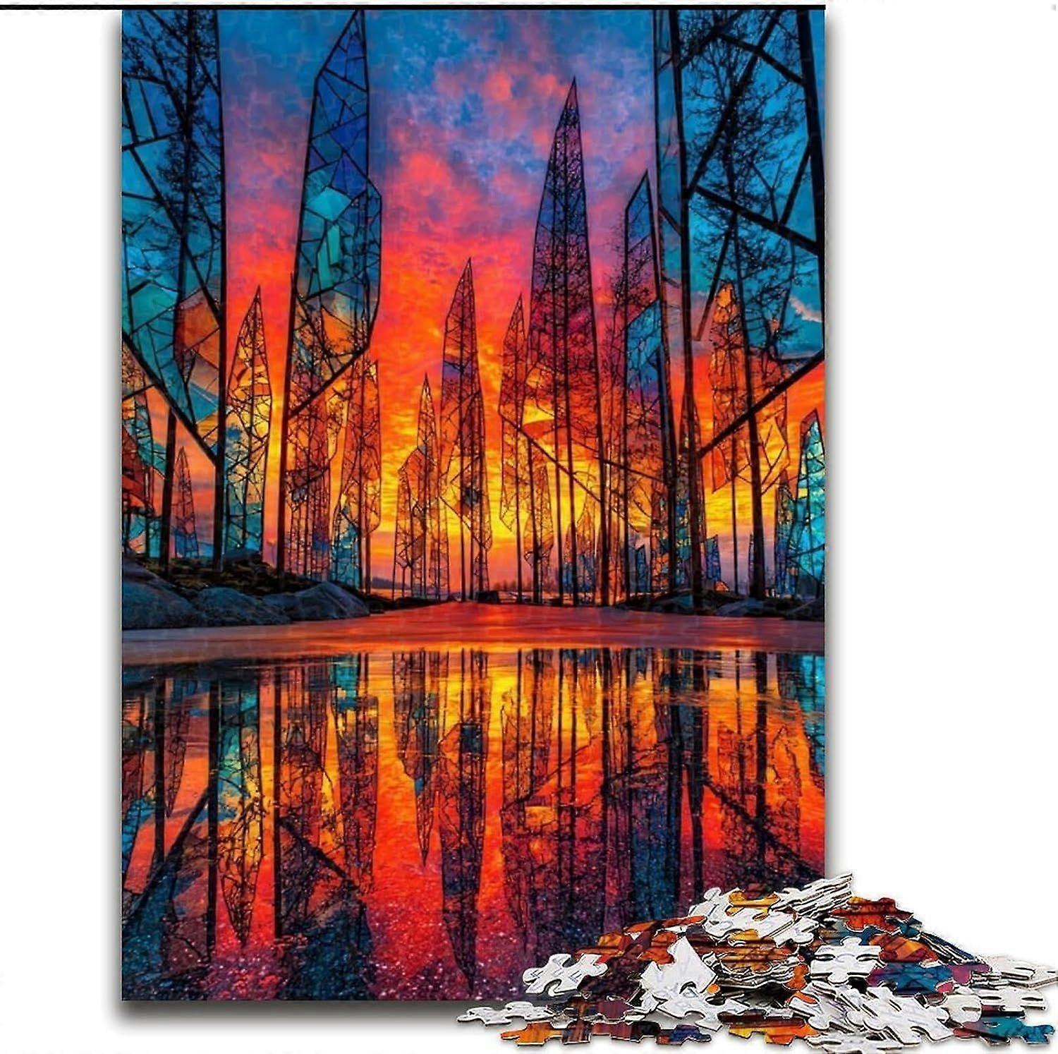 Jigsaw Puzzle for Adults And Teenagers Stained Glass Forest Jigsaw,Relax Games Is Ideal As A Gift for The Whole Family - PT 3405