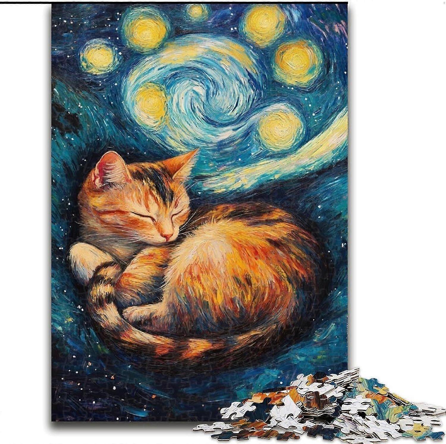 Jigsaw Puzzle for Adults Teens starry sky Night Sky Black Cat Puzzle,Classic Educational Games Beautiful Decoration - PT 3723