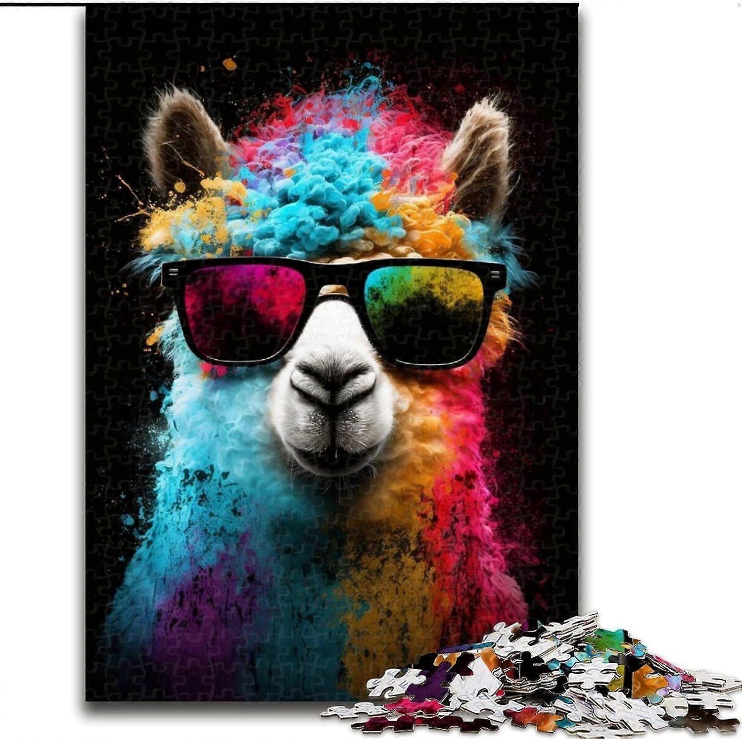 Jigsaw Puzzles for Adults Colourful Alpaca with Glasses Teenager Jigsaw,Challenging Game Toys Wall Decoration Unique Birthday And Xmas Gifts - PT 3092