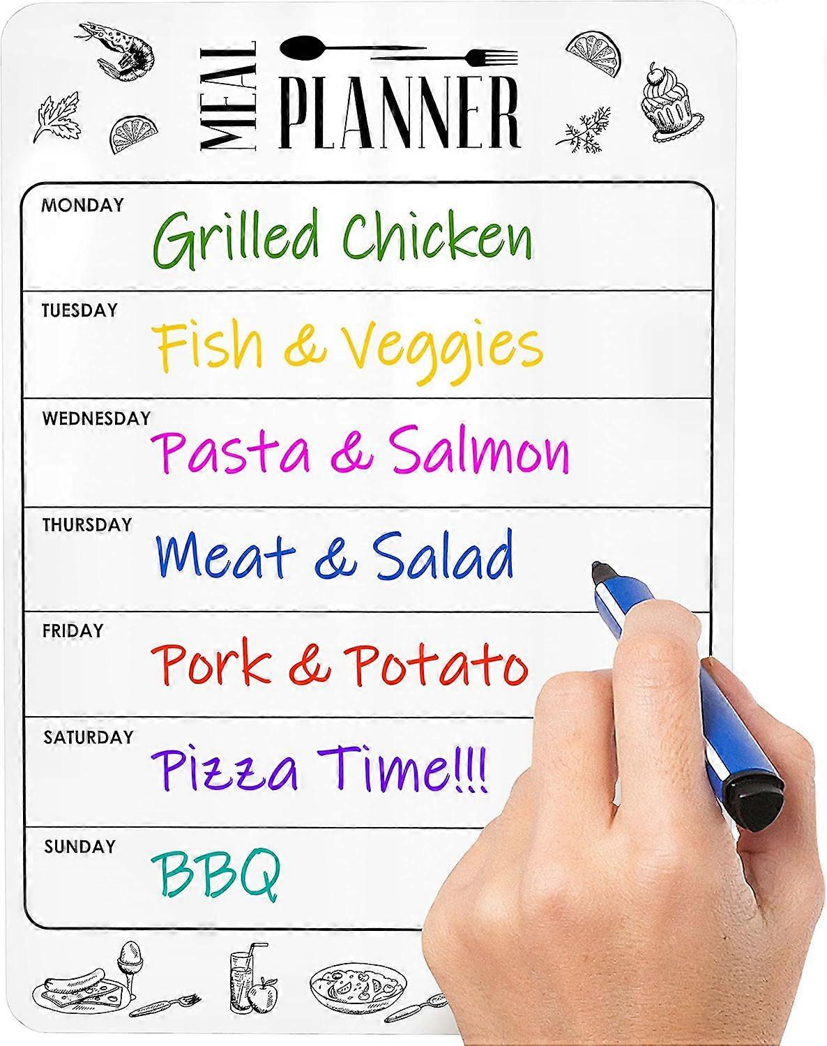 ZENGO Magnetic Meal Planner for Refrigerator Dry Erase A4 - Magnet Weekly Menu Board for Fridge - Magnetic Menu White Board 22*11cm