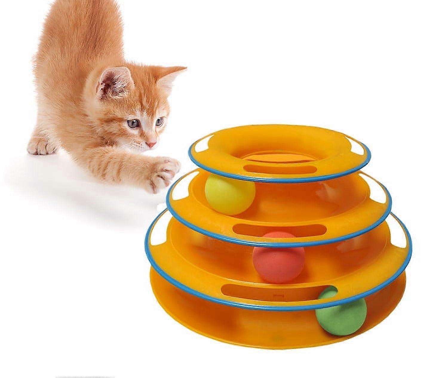 This innovative Purrfect Feline pet product keeps your cat entertained while giving them the physical and mental work out they require. The three stages include ball that zoom around the multi-level tracks, mimicking natural prey and stimulating healthy activity. This product is a major improvement over other similar products on the market. New design includes a bar across top of toy to prevent cats from sticking their head in and getting stuck. Design also includes anti-slip grips to prevent the toy from sliding around while being played with. This toy is sure to make your cat happy and healthy! TITAN'S TOWER: Multi-Stage Interactive Cat Ball Toy Mimics Natural Prey IMPROVED DESIGN: Bar across top prevents your cat's head from getting stuck, anti-slip grips ensure cat toy doesn't slip MULTI-LEVEL TRACKS: Keeps your Cat Entertained and Playing. Suitable for One or More Cats ACTIVE LIFESTYLE: Keep your Cat Happy. Search "Purrfect Feline" for other Great Products! Brand: Purrfect Feline