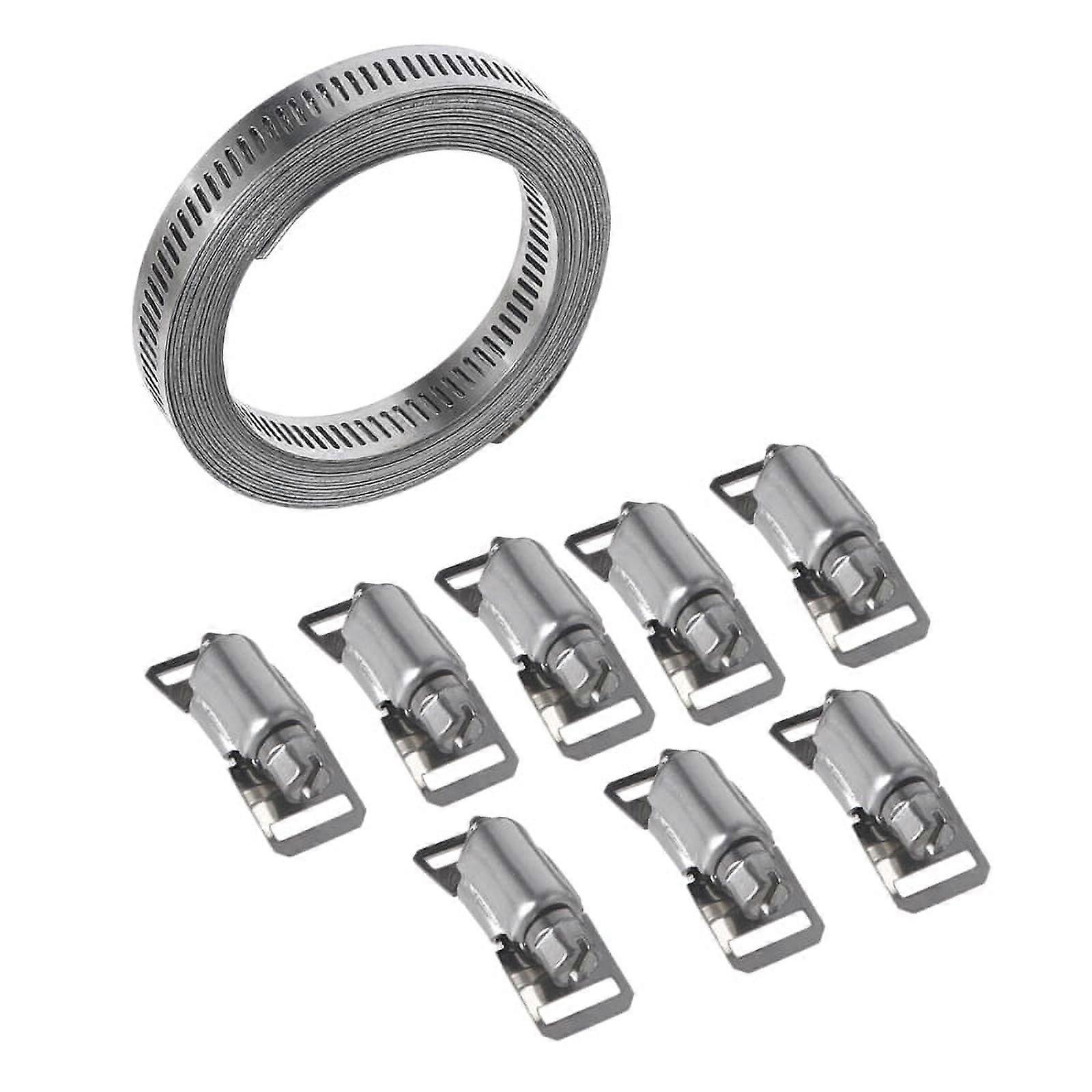 RABBITH Large Adjustable Hose Clamp Set with Manual Cut-To-Fit 12 Feet Strap + 8 Fasteners All 304 Stainless Steel