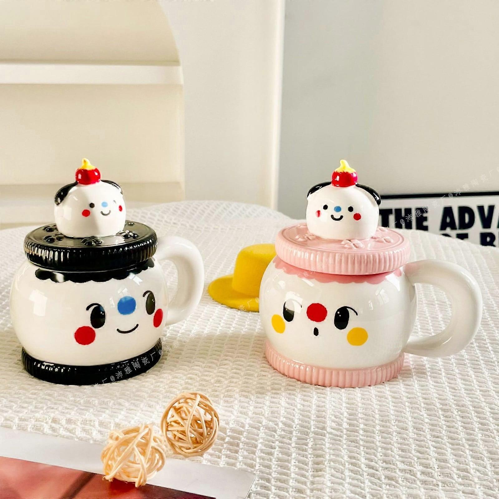 Jacenvly Kawaii Ceramic Grinch Mug with Lid, Compatible with Christmas Decorations, Cute Coffee Cup for Kids, Women, Girls, Breakfast, Birthday Gift
