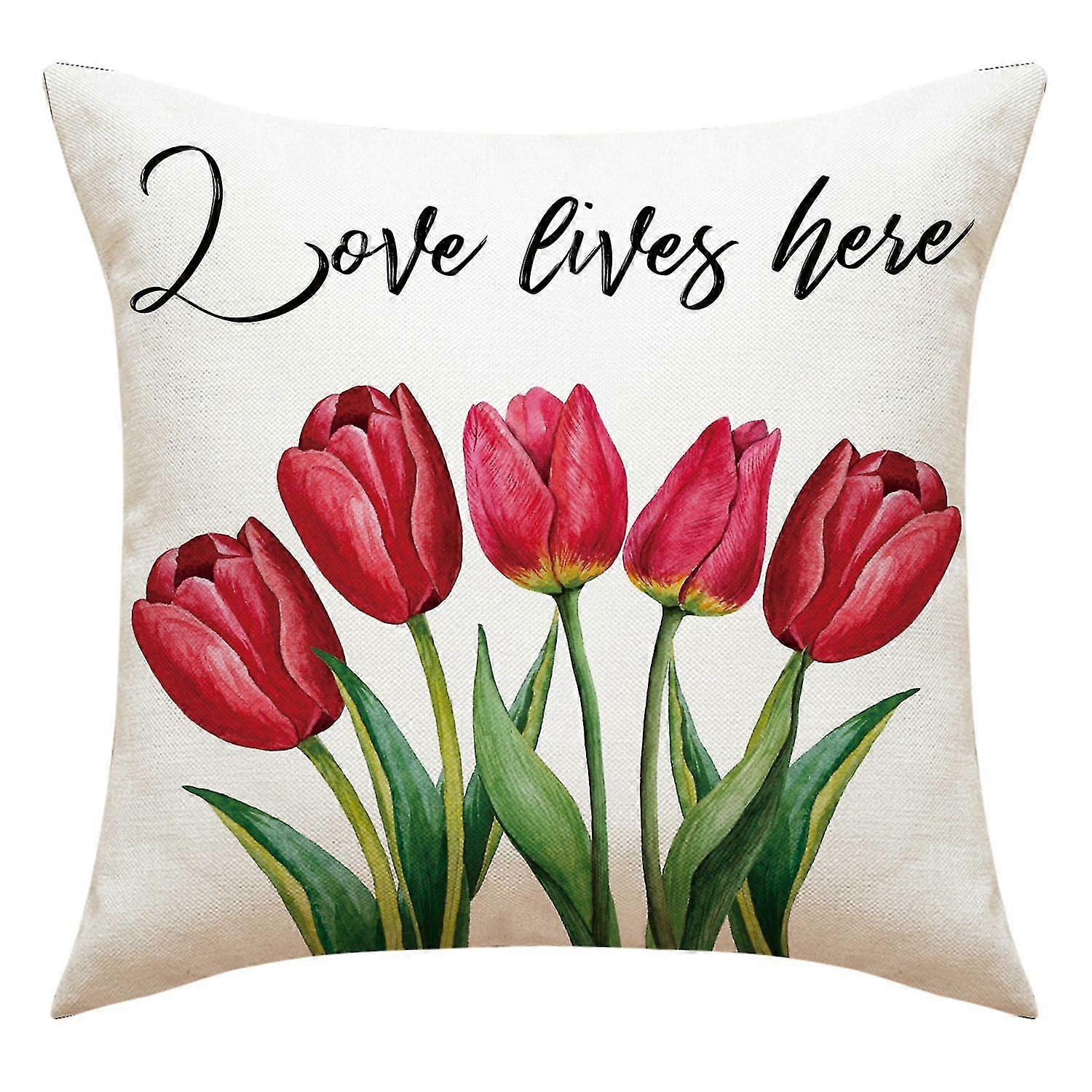 Valentine's Day Pillowcase Red & Pink Color Tulips Sofa Cushion Cover Bedroom Car Square Pillow Sham 25-26
