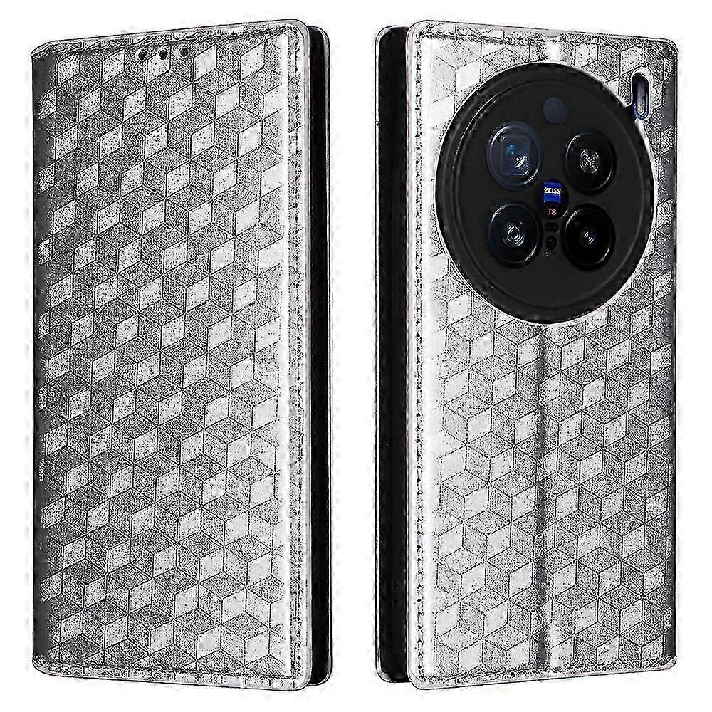 For vivo X200 Pro 5G Wallet Case Rhombus Imprinted Leather Phone Cover - Black 25-26