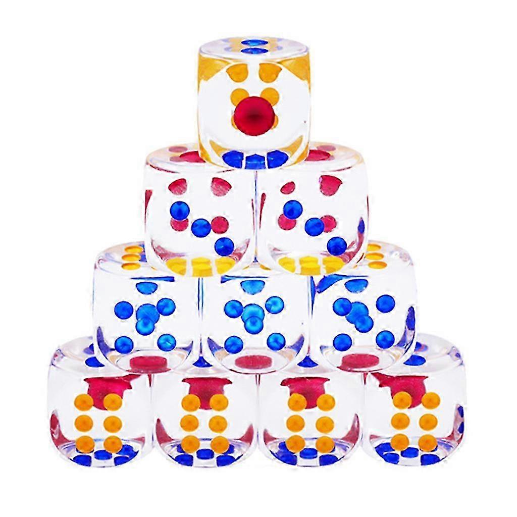 10x Acrylic Dice Transparent 6 Sided Colorful Dice Casino Poker Game Bar Party Crystal Dices Children Board Game Toy 16mm 25-26