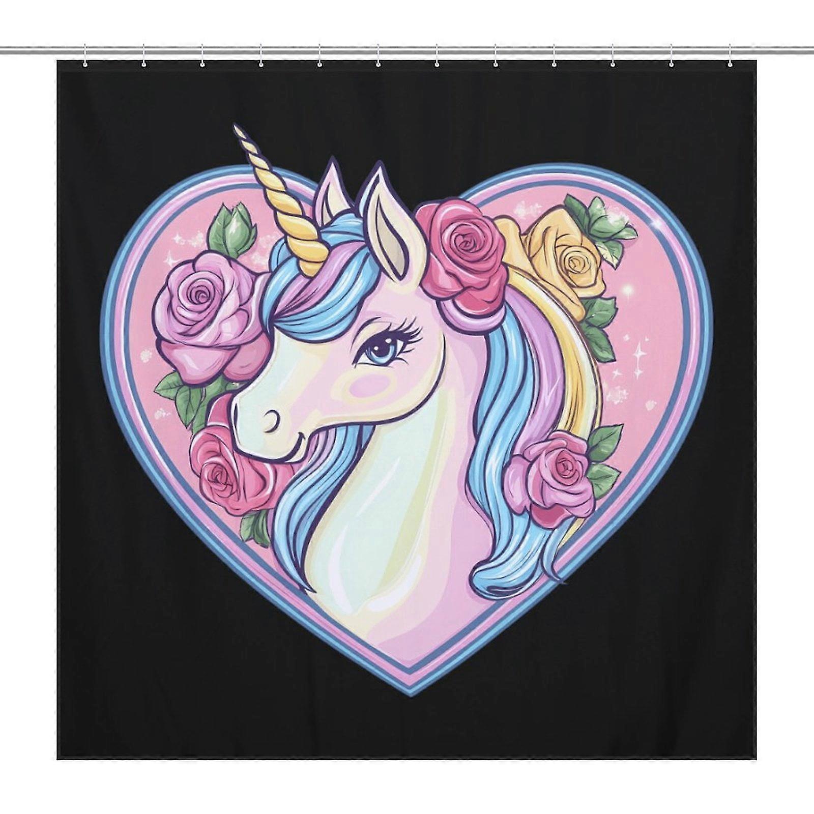 Unicorn Magic Rose Heart Shape Waterproof Shower Curtain Liner Light-Weight & Machine Washable Bath Curtain for Bathroom Decor 72x72Inch (183x183cm)