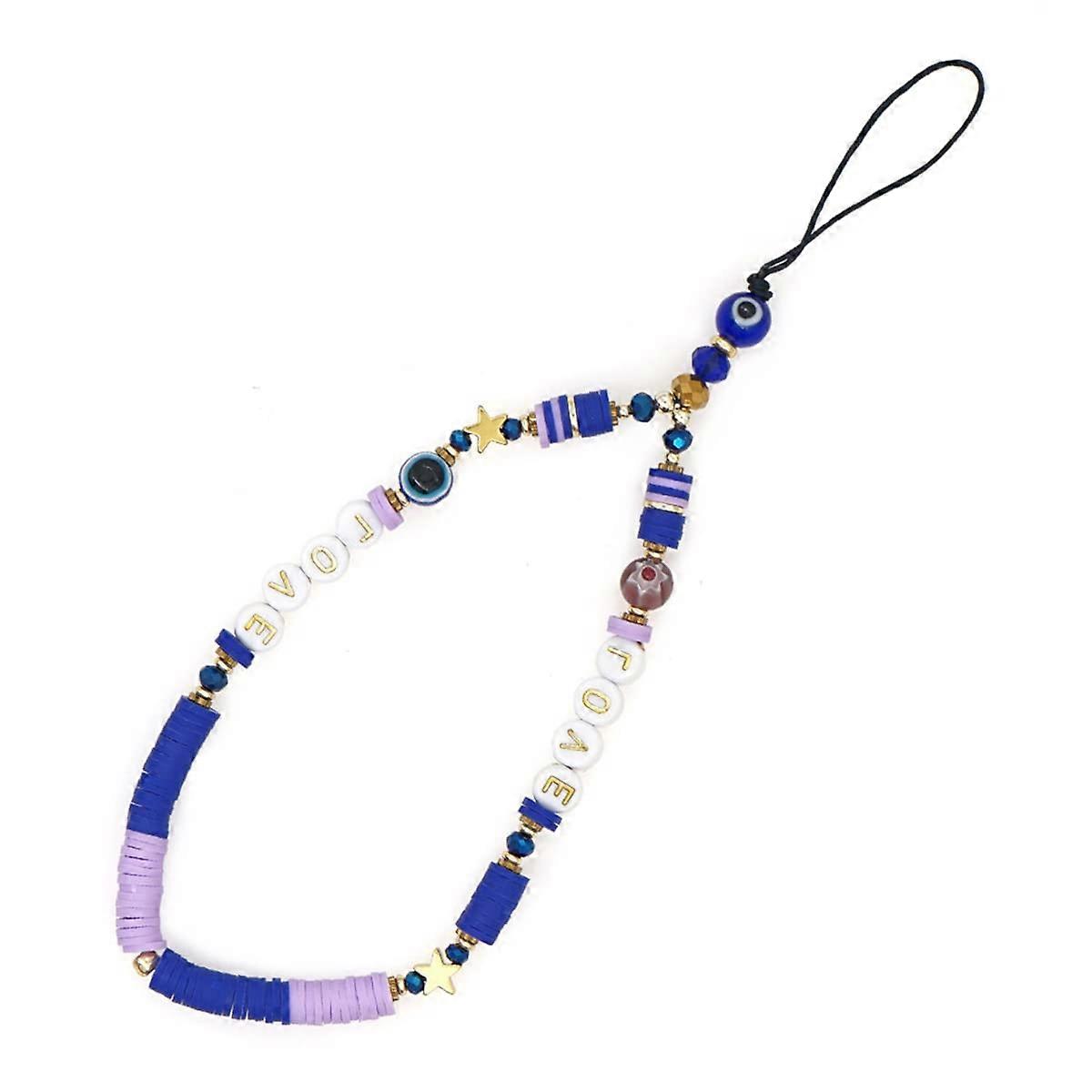 ZENGO Smiley Face Evil Eye Beaded Phone Charm String Colourful Beads Lanyard Wrist Strap Anti-Lost Polymer Clay Phone Chain Key Chain